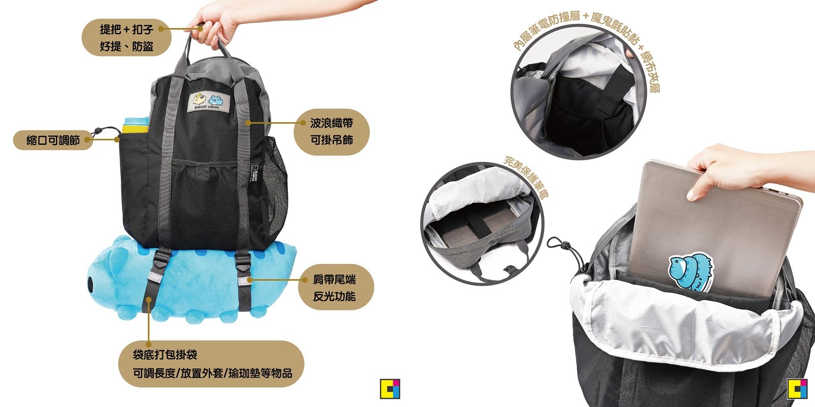品名:[貓貓蟲-咖波] 咖波狗狗旅行背包X murmur(黑色)