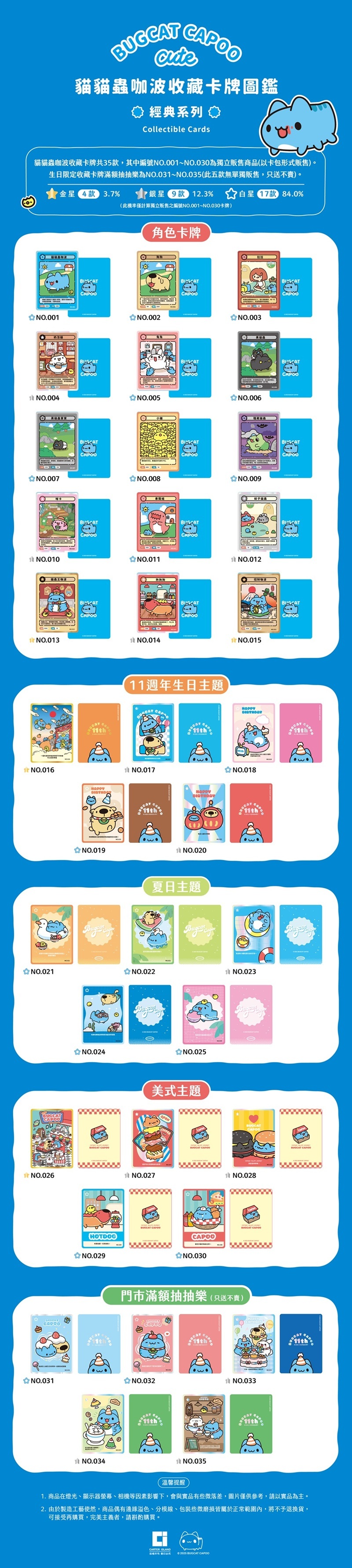 從吃吃喝喝到冒險玩樂,將「貓貓蟲-咖波」最熟悉、最療癒的瞬間通通收進卡牌裡!色彩繽紛的畫面、滿滿細節的小故事,每翻一張都像打開一段可愛回憶💙