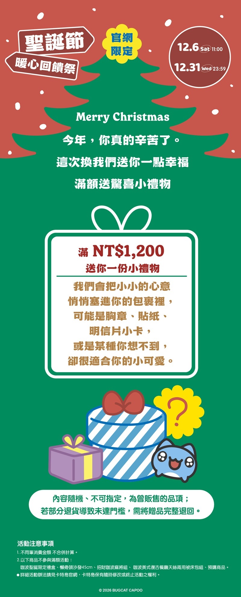 「今年,你真的辛苦了。這次換我們送你一點幸福——滿額送驚喜小禮物。」