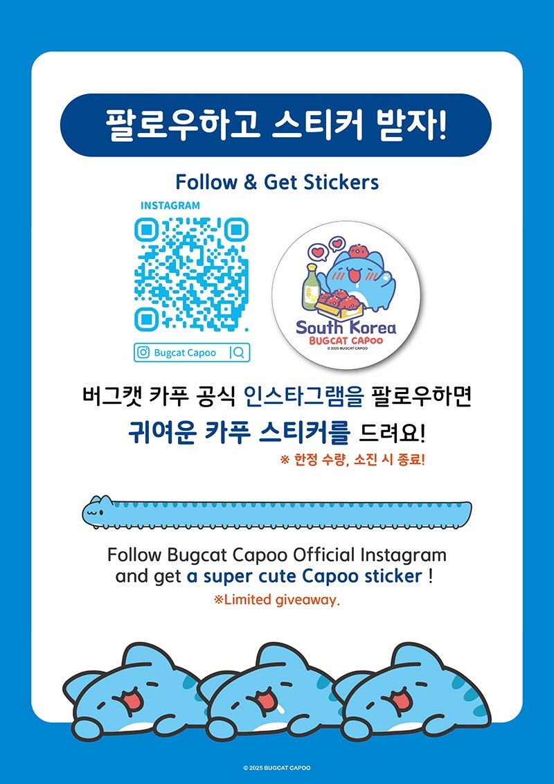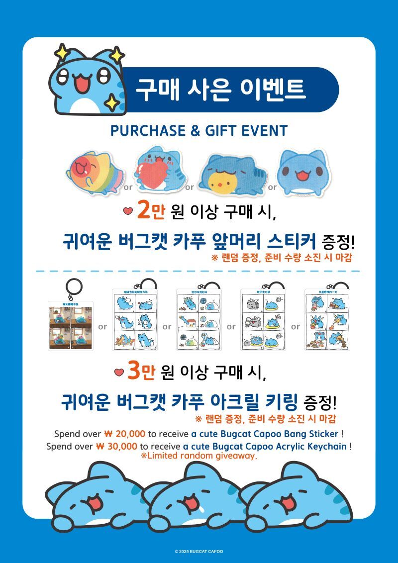 Spend over ₩ 20,000 to receive a cute Bugcat Capoo Bang Sticker !