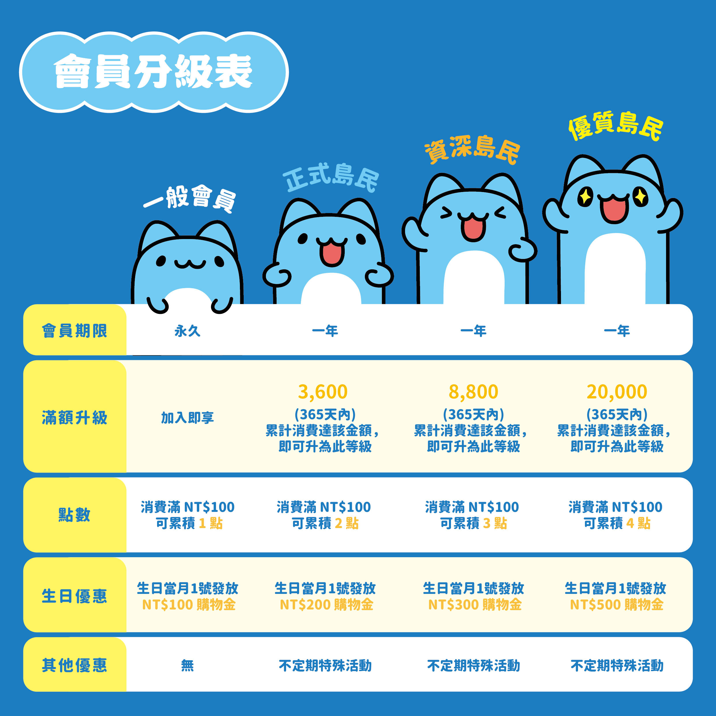 加入卡特島會員,台灣本島全館滿NT$1,000免運